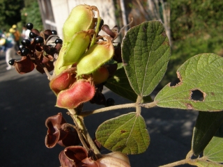 【左】タンキリマメ。この豆を食べると痰(たん)が出なくなるといわれています。
