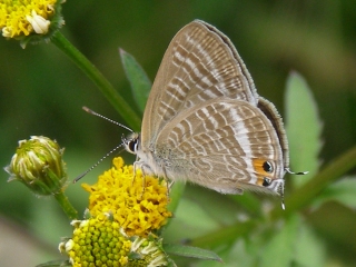 【右】カタバミを食べるヤマトシジミ。