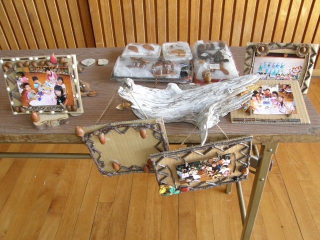 【左】写真立て製作にがんばっています。  【右】完成した写真立て