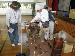 今回初めて小学校を会場に行われた。午前は自然観察とネイチャーゲーム、午後は自然物の工作を行いました。