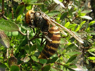 【右】オオスズメバチが死んでいました。一番強い毒を持っていますから注意してください。