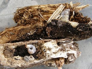 【左】上の大きいのがカブトムシ、下がクワガタです。