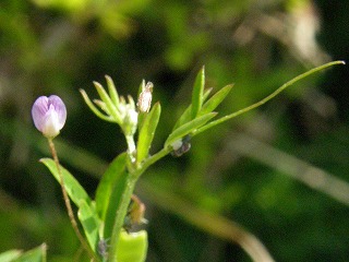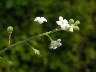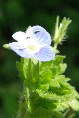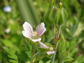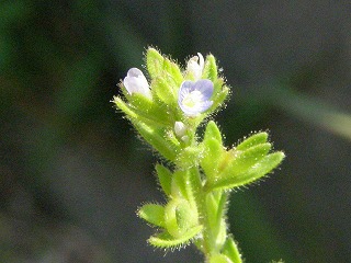 【左】オオイヌノフグリ花(右)と犬の陰嚢(ふぐり)似た果実(右)