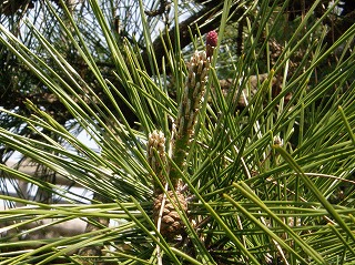 【右】マツ。先の赤いのが来年実る果実、下が今年実る果実