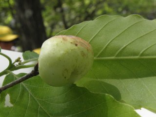 【左】タマバチが作ったもので、ナラメリンゴフシと呼びます。