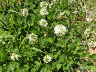 スズメノヤリ、シロツメクサ、タチイヌノフグリ、マツバウンラン