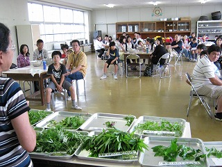 【野草の天ぷら試食の様子】