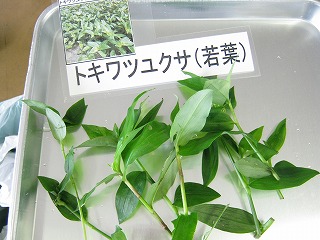 【左】採集した野草 【中】採集した野草 【右】採集の時、味見したアマチャヅル、有名な薬草(煎じて飲むと髪が黒くなる)