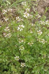 【左】タネツケバナ。稲の苗作りの為にモミの芽だしを行うため、水に漬ける時期を知らせる花です。 【右】ハハコグサ。春の七草の御形(ごぎょう)