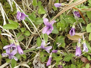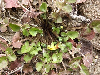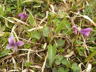 ノジスミレ、コオニタビラコ、トキワハゼ、スズメノヤリ、シロツメクサ、オオイヌノフグリ、トウカイタンポポ、カラスノエンドウ、ヨモギ、セリ、アベマキ