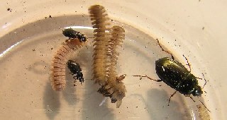 林の土から ツチカメムシ、ムカデ、ヤスデ、ワラジムシ、ダンゴムシ
