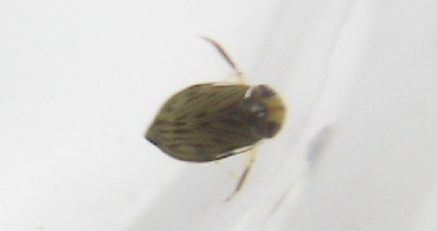 【右】チビミズムシの一種です。半翅目(はんしもく)といってセミやカメムシの仲間です。