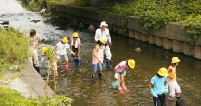 【左】少し深いところもありました。川は浄化槽の匂いがしました。