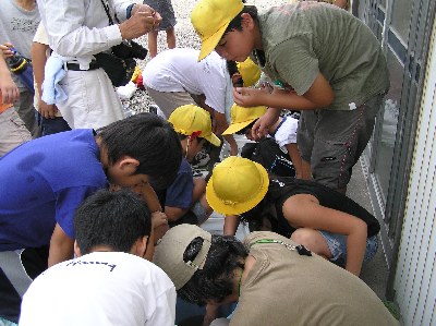 【左】全国的に少なくなったヒメタイコウチです。水中でなく湿地帯の水際などに住んでいます。
