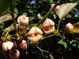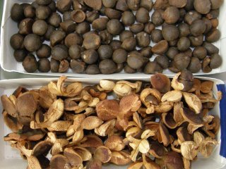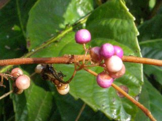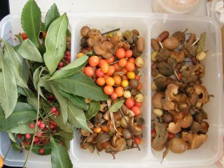 【左】ナンキンハゼの実を頂きました。 【右】お好みの材料を選んでリースつくります。