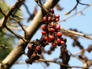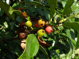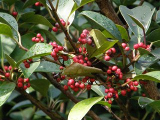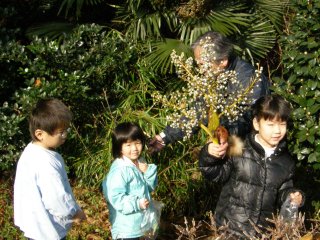 【左】スタッフが持参した材料。マンリョウ、タマサンゴ、チャの実