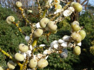 【右】ヤシの実と白いのはイセリアカイガラムシ。