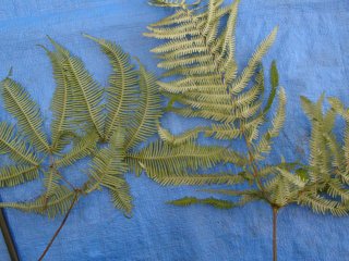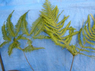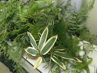 【左】正月飾り用のマツ、ウラジロ、コシダ、クマザサ。