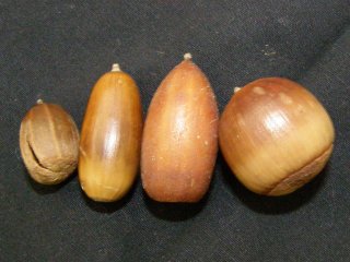 【中】左からスダジイ、コナラ、マテバシイ、クヌギ。