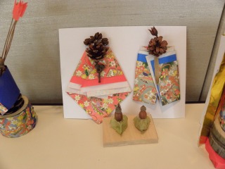 【左】熱心に「雛人形」作りに取り組んでいます。 【右】勇ましい作品が出来ました。