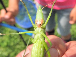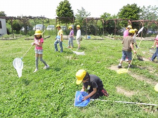 【左】フナビオの生き物探検の出発 【右】草むらで虫さがし