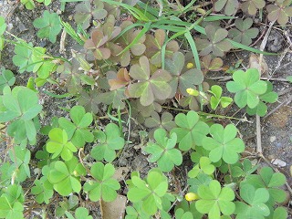 【右】上、カタバミ。下、オッタチカタバミ(外来)