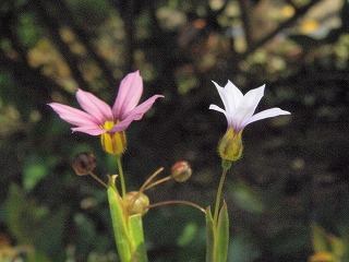 【右】左、ニワゼキショウ(外来)。右、オオニワゼキショウ(外来)。