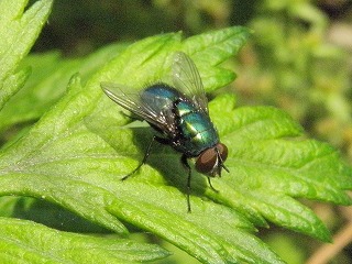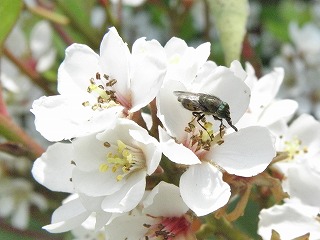 【中】シャリンバイにツマグロキンバエ来ていました。(おなじみのハエで一年中見られます)