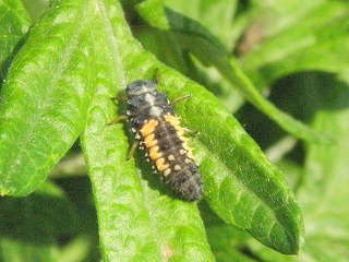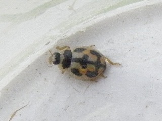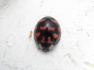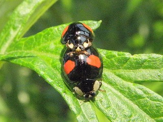 【左】ナミテントウ(羽は黒地、赤地、2紋、4紋、10紋、19紋、紋無しなどいろいろな型があります)