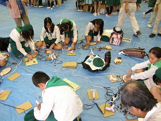 【左】【中】 熱心に作品製作に取り組んでいます。 【右】児童が製作した作品