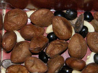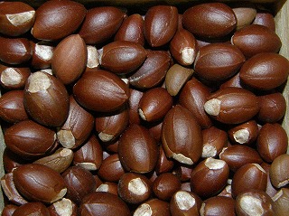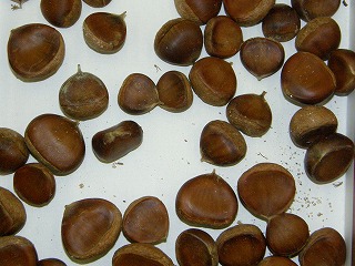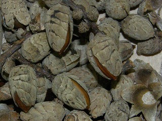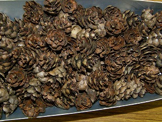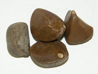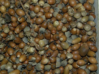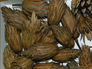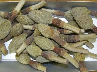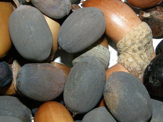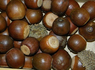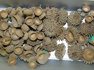 【左】ハスの種子 【中】カラマツ 【右】ドングリの抜け殻