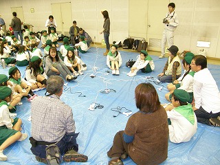 終了後スタッフだけで反省会を行いました。「準備した木の実等の質が良かった」 「グルーガンを置く台が小さい」 「写真立て台に木の輪切りを使ったのは良かった」「テーマを持って写真立てを作ると作りやすい」 「あまり細かく作り方を指示しないほうが良い」 「2団を混成するときはほぼ同人数にできないか」 「晴れバージョンか雨バージョンかをもっと早く連絡できないか」などなど非常に多くの意見が出ました。来年やられる阿久比の皆さん参考にしてください。