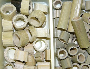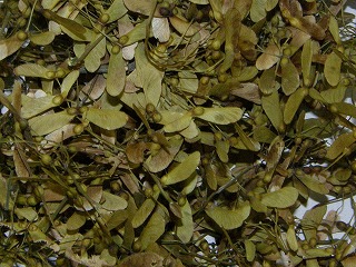 【左】タケ 【中】ハンテンボクの果実 【右】カエデ