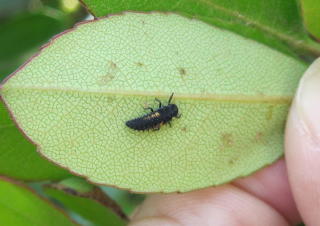 【左】コクロヒメテントウ?(体長約2ミリ) 【中】