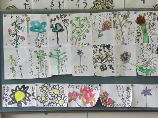 予め採集してあった草花を材料に絵手紙を作成しました。絵手紙を指導していただいたスタッフはベテランで合理的、効果的なカリキュラムで指導されました。子どもたちは時間内に絵手紙を楽しく作成することが出来ました。当会に依頼されているのは、草花の名前同定でしたが花壇にある園芸植物が何点かありましたので名前が分りませんでした。また、テ−マの「フナビオの草花」でしたがフナビオに限定されずに校舎の周りのものが多かったような気がします。絵の材料としてされた草花は極力、次の所に載せました。(記・降幡)
