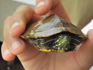 ミシシッピーアカミミガメ(外来)、ヌマガエル、アマガエル、ドジョウ、アメリカザリガニ、タニシ、