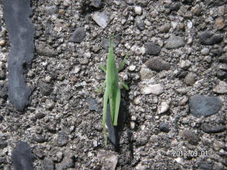 【左】オンブバッタ 【中】イボバッタ(コンクリート壁に何匹も止まっていました) 【右】ツユムシ類幼虫