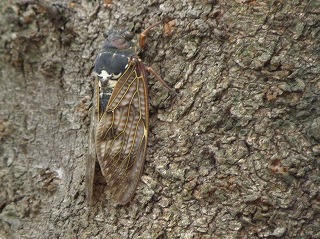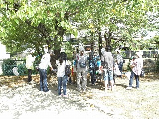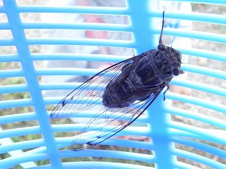 【左】暑い中、元気に集まりました。 【右】アブラゼミがいる