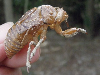 【左】ツクツクボオシ 【中】アブラゼミの抜け殻 【右】アブラゼミ