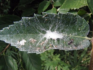 【左】ジョロウグモ。上が雄 【中】33 【右】ハッカの花
