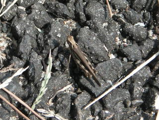 【左】オンブバッタ 【中】ヒナバッタ♀(腹の濃淡縞模様が特徴です) 【右】オカメコオロギ