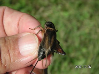 【左】クルマバッタモドキ 【中】チョウセンカマキリ? 【右】エンマコオロギ♀(採集された10匹以上のエンマコオロギは全て雌)