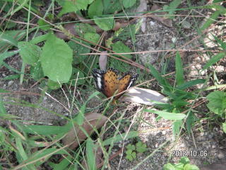 【左】ナナホシテントウ 【中】マダラバッタ(誤ってヒナバッタと説明しました。) 【右】ツマグロヒョウモン♂