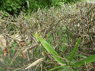 【左】ミミズの仲間   【中】ニシキギ(カミソリノハ)   【右】ニシキギの植え込み