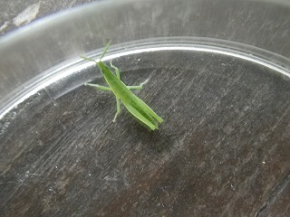 昆虫:バッタ・カマキリ オンブバッタ、ショウリョウバッタ、マダラスズ、ヤブキリ、コオロギの仲間、オオカマキリ、チョウセンカマキリ(?)