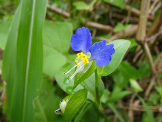 【左】ジシバリ 【中】ツユクサ 【右】蛾の幼虫 ?