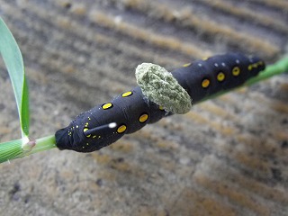 【左】セスジスズメ?若齢幼虫 【中】ヒナバッタ♂ 【右】ナガコガネグモ