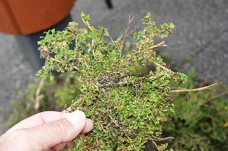 【左】コクワガタ♂ 遺骸 【中】桜 ジンダイアケボノ 【右】外来種 メリケントキンソウ 侵入発芽
