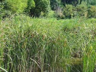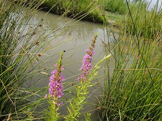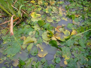 【左】ヒメガマ 【中】ミゾハギ 【右】アサザ