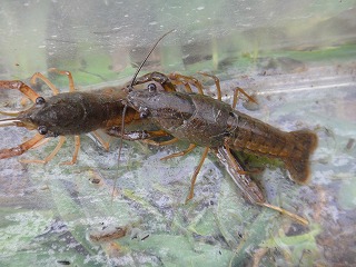 【左】アメリカザリガニ 【中】カダヤシ 【右】マツモムシ